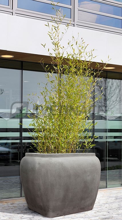 Venkovní květináč Alegria Water Jar Square Grey s rozměry 65x65x53cm má šedou matnou barvu a je odolný UV záření. Ručně vyrobený z kompozitního materiálu a cementu, který odolává mrazům a povětrnostním podmínkám.