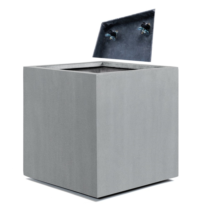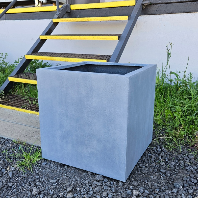 Květináč Alfa Cube s kolečky a rozměry 40 x 40 x 40 cm má šedou matnou barvu a je vyrobený ze syntetického vlákna a drceného kamene. U tohoto materiálu oceníte velmi dobrou odolnost vůči oděru a slunečním paprskům. Je odolný UV záření. Květináč dobře odolává i mrazům. Při použití květináče v interiéru doporučujeme zakoupení příslušnou vodotěsné gumové vložky. Při použití v exteriéru je nutné navrtat dno pro odtok přebytečné dešťové vody. Květináč je velice kvalitní a je kladen důraz na snadnou údržbu.