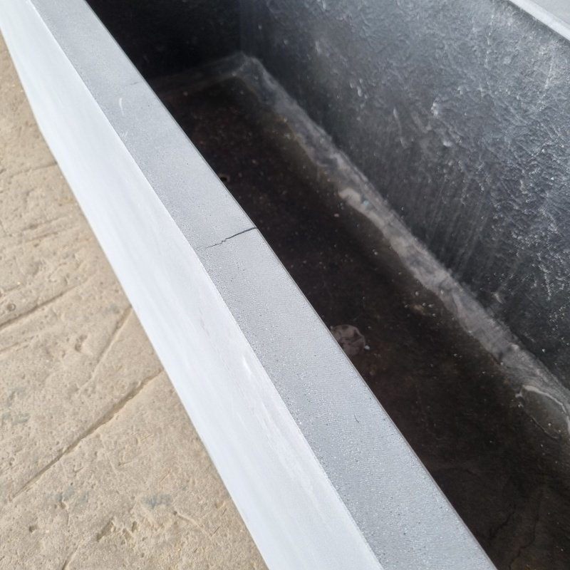 Poškozený truhlík Alfa s rozměry 150 x 50 x 50 cm má šedou matnou barvu a je vyrobený ze syntetického vlákna a drceného kamene. U tohoto materiálu oceníte velmi dobrou odolnost vůči oděru a slunečním paprskům. Je odolný UV záření. Truhlík dobře odolává i mrazům. Při použití truhlíku Alfa v interiéru doporučujeme zakoupení vodotěsné gumové vložky nebo folie do truhlíků. Při použití v exteriéru je nutné navrtat dno pro odtok přebytečné dešťové vody. Truhlíky jsou velice kvalitní a je kladen důraz na snadnou údržbu.