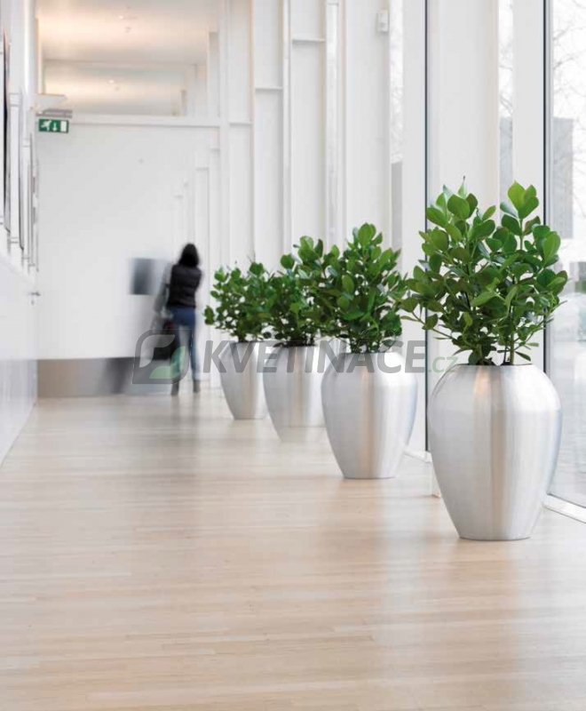 Hliníkový květináč Aluminium Cancun Natur s průměrem 48cm a výškou 90cm má lesklou hniníkovou barvu a je vyroben z nerazavějícího hliníku, který je vodotěsný. Vhodný do interiéru. Pro osázení živou květinou doporučujeme zakoupit gumovou vložku a vodoznak pro přehled hladiny vody.