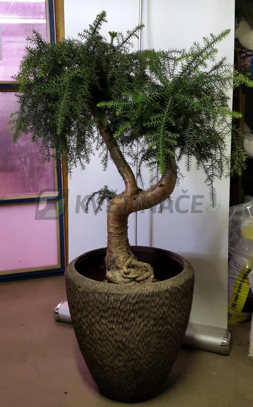 Dekorativní pokojový jehličnan Araucaria, který pěstujeme v běžném zahradnickém substrátu. Přesazujeme v březnu. Během vegetace přihnojujeme tekutým univerzálním hnojivem. Dobře přezimuje při teplotě okolo 10°C ve světlé místnosti. V zimě omezíme zálivku na minimum.