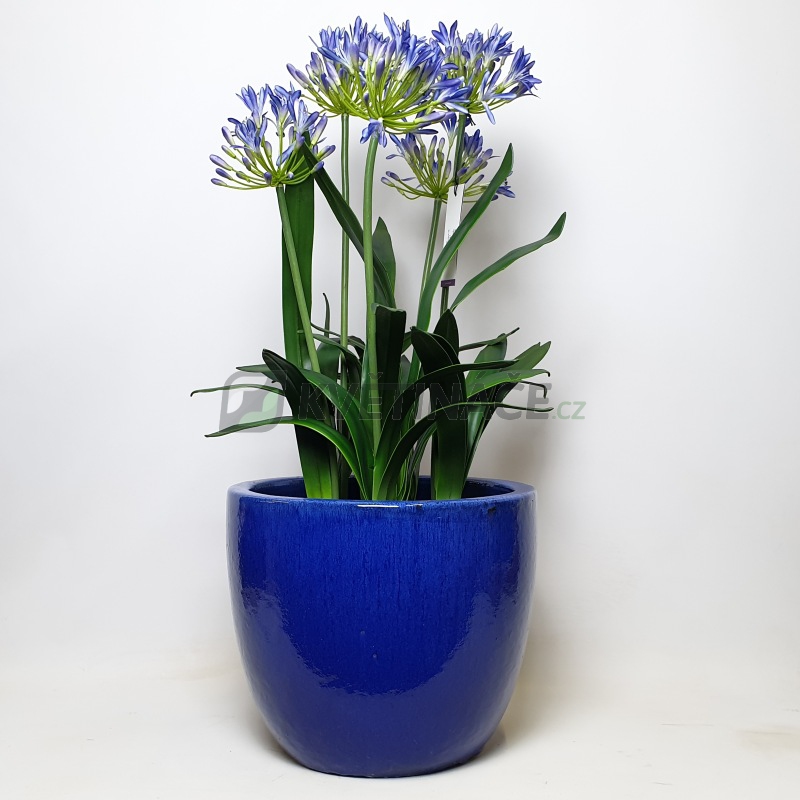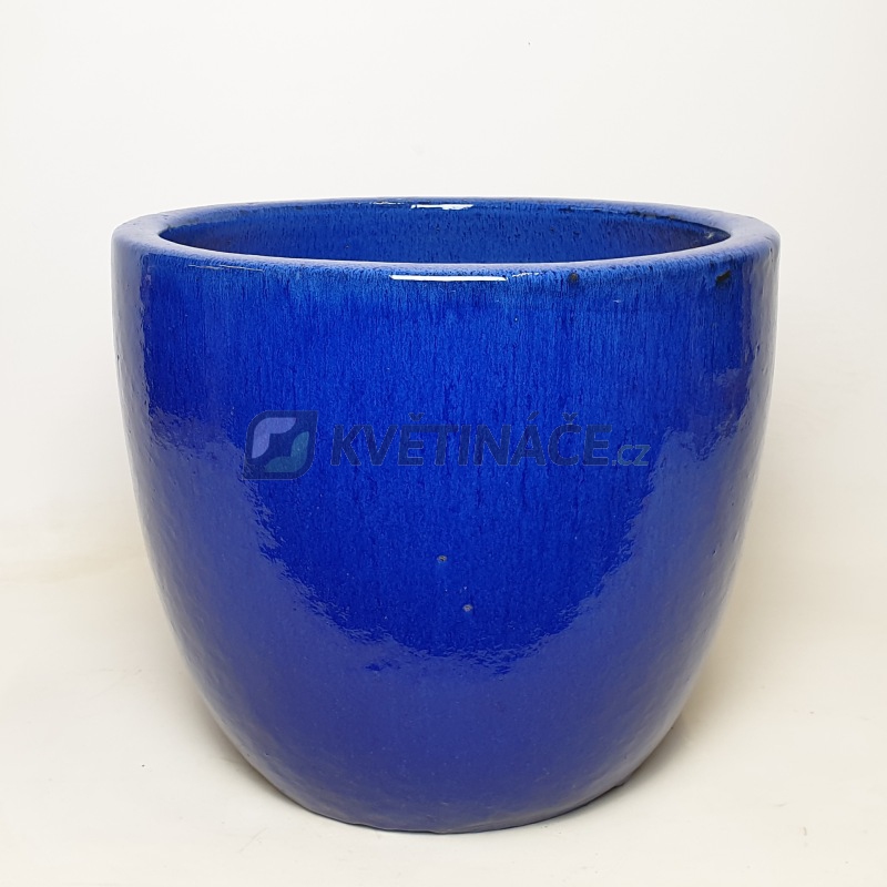 Keramický květináč Blue Couple Extra s průměrem 39cm a výškou 34cm má modrou lesklou glazuru. Vhodný do interiéru i exteriéru. Při použití v interiéru je nutné vložit vodotěsnou vložku.
