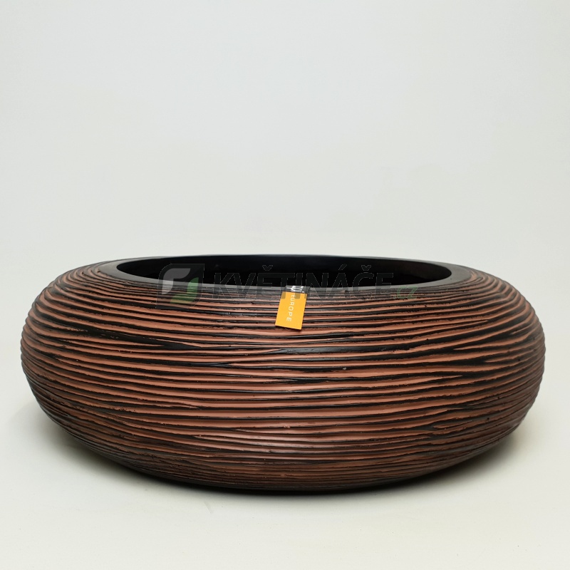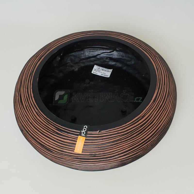 Interiérová bonsaj mísa Capi Rib ve tvaru uzavřené mísy černo-hnědé barvy s rozměry 35x10cm má matnou barvu. Je odolná UV záření, vodotěsná a poměrně lehká. Vyrobená z kompozitního materiálu, který je vhodný do interiéru, ale lze ji využít i v letním exteriéru. Při vývoji květináčů Capi byl kladen důraz na snadnou údržbu. Tato technologie umožňuje, aby květináč byl lehký a pevný.