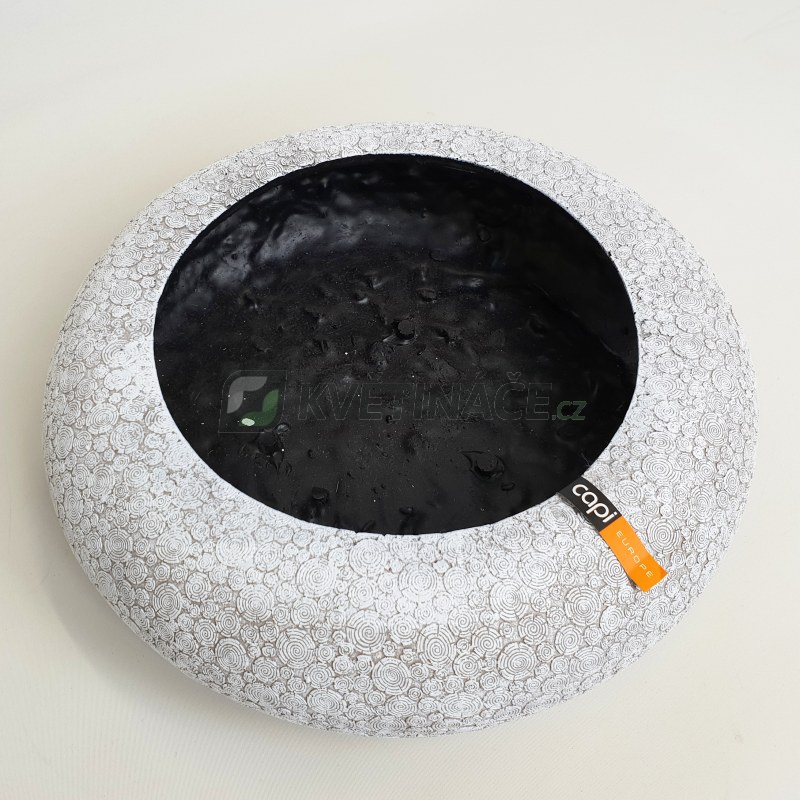 Interiérová bonsaj mísa Capi Wood ve tvaru uzavřené mísy šedo-bílé barvy s rozměry 35x10cm má matnou barvu. Je odolná UV záření, vodotěsná a poměrně lehká. Vyrobená z kompozitního materiálu, který je vhodný do interiéru, ale lze ji využít i v letním exteriéru. Při vývoji květináčů Capi byl kladen důraz na snadnou údržbu. Tato technologie umožňuje, aby květináč byl lehký a pevný.