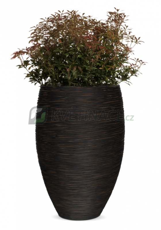 Květináč Capi Nature Elegant de Luxe hnědý s šířkou 40cm a výškou 60cm má černou matnou barvu a hnědé vroubkování. Květináč je odolný UV záření. Ručně vyrobený z kompozitního materiálu a keramiky. Při použití v interiéru je nutné zakoupit gumovou vložku, do které se zasadí rostlina. Vložka zaručí 100% nepropustnost vody a lze s ní vytvořit samozavlažovací systém. Doporučujeme také zakoupit vodoznak, díky kterému budete mít přehled o stavu hladiny vody v květináči.