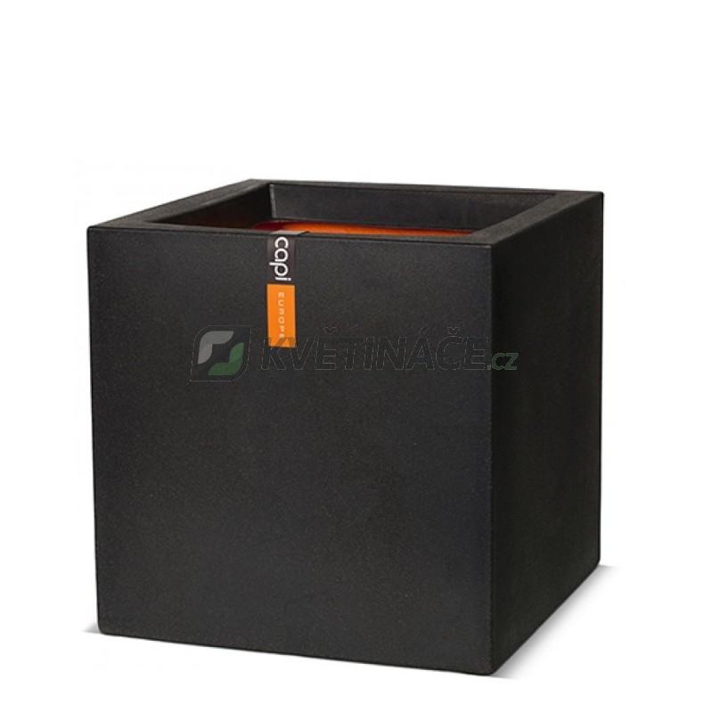 Venkovní květináč Capi Lux krychle 20x20x20cm má černou polo-matnou barvu a je odolný UV záření. Ručně vyrobený z kompozitního materiálu, který odolává mrazům a povětrnostním podmínkám. Při použití v interiéru je nutné zakoupit gumovou vložku, do které se zasadí rostlina.