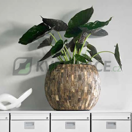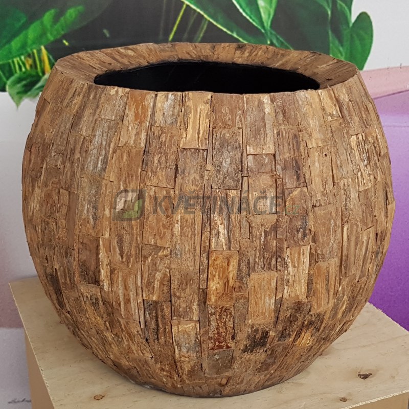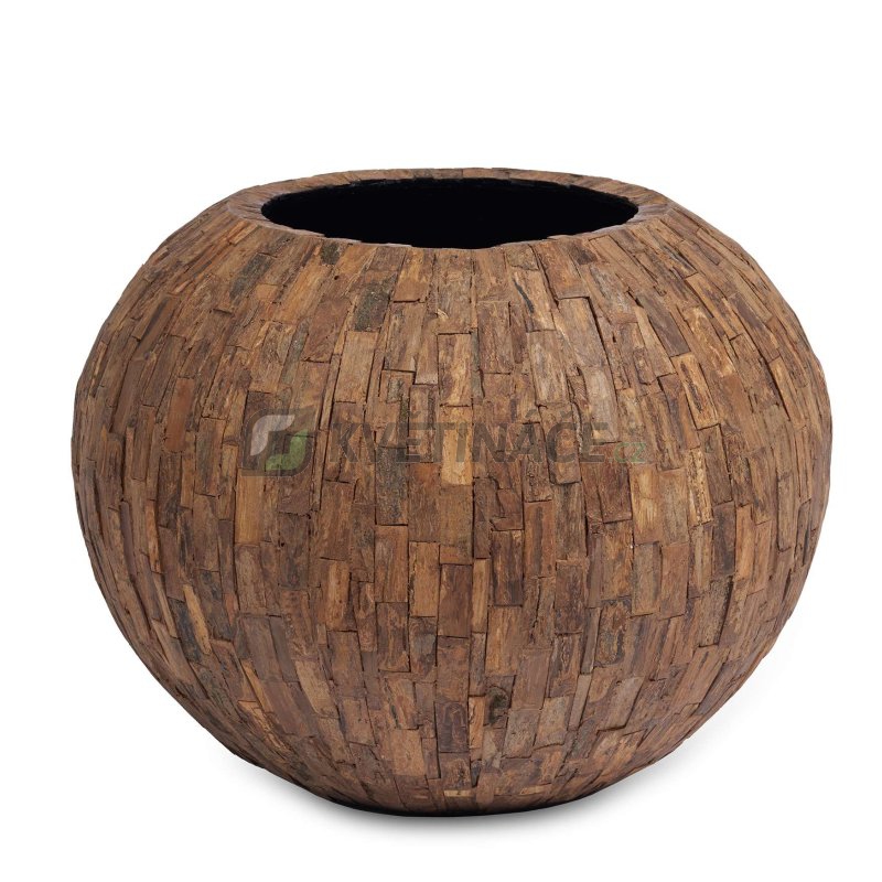 Velice luxusní květináč Cemani Teak Bowl 47x38cm má povrch vykládaný dřívky z pravého teakového dřeva a konstrukce je vyrobena z kompozitního materiálu, který je lehký, ale velice pevný. Teakové dřevo je ekologicky pěstováno v produkčních plantážích. Pro osázení živou rostlinou doporučujeme gumovou vložku a vodoznak.