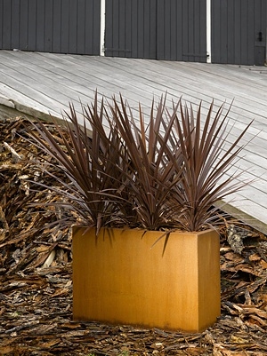 Truhlík Cortensteel Trend Topper s šířkou 100 cm, hloubkou 40 cm a výškou 40 cm je vyrobený z oceli s vysokým obsahem mědi, chromu a niklu. Tato ocel má speciální vlastnost, že na povrchu vytváří vrstvu rezavé barvy, která zabraňuje další korozi.