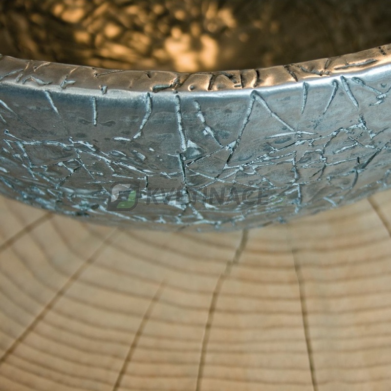Luxusní květináč Crackle Aluminuim s průměrem 38cm a výškou 70cm má vysoký kulatý tvar. Konstrukce květináčů je vyrobena z kvalitního pevného kompozitního materiálu. Povrch je lakovaný z hliníkového prášku. Květináč je ručně vyrobený a to zaručuje originál každého kusu. Květináč je vhodný do interiéru. Pro osázení živou květinou je nutné zakoupit gumovou vložku, do které se zasadí rostlina. Doporučujeme také zakoupit vodoznak, díky kterému budete mít přehled o stavu hladiny vody v květináči.