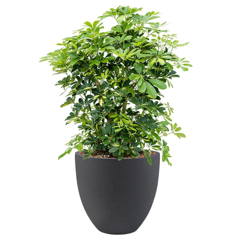 Venkovní květináč D-lite New Classic L antracit concrete s rozměry 55 x 46 cm má matnou černou barvu a je vyroben z kompozitního materiálu.