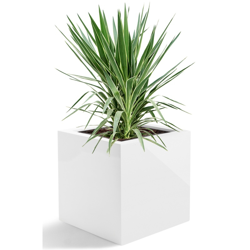 Květináč D-lite Cube S bílý lesk s rozměry 30 x 30 x 30 cm ve tvaru krychle má lesklou bílou lakovanou barvu a je vyroben z kompozitního materiálu. Materiál je mrazuvzdorný a vhodný do exteriéru i interiéru. Je odolný UV záření. Květináč má předvrtaný drenážní odtok vody. Pro interiér je nutné zakoupit vodotěsnou folii do květináčů. Doporučujeme zakoupit vodoznak pro přehled o stavu hladiny vody v květináči.