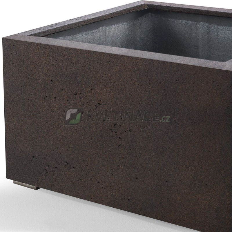 Venkovní květináč D-lite cube XL Rusty Iron concrete ve tvaru krychle s rozměry 60 x 60 x 60 cm má matnou hnědou barvu a je vyroben z kompozitního materiálu. Je odolný UV záření, materiál je mrazuvzdorný a vhodný do exteriéru i interiéru. Pro interiér je nutné zakoupit vodotěsnou gumovou vložku do květináčů. Doporučujeme zakoupit vodoznak pro přehled o stavu hladiny vody v květináči.