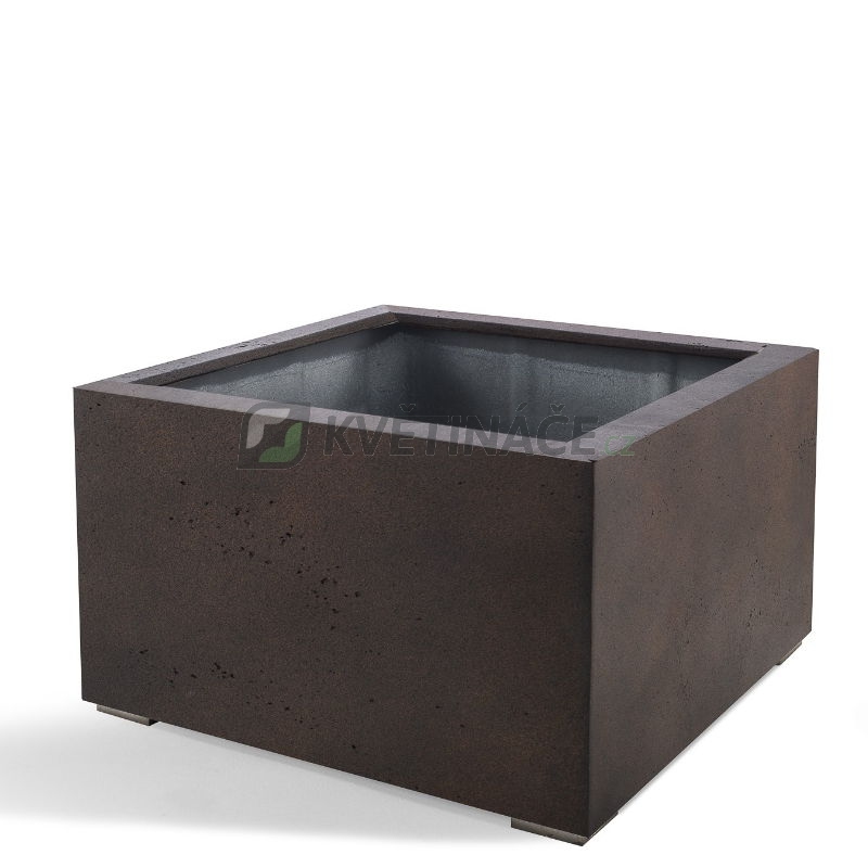 Venkovní květináč D-lite Low Cube S Rusty Iron concrete ve tvaru krychle s rozměry 60 x 60 x 40 cm má matnou hnědou barvu a je vyroben z kompozitního materiálu. Je odolný UV záření, materiál je mrazuvzdorný a vhodný do exteriéru i interiéru. Pro interiér je nutné zakoupit vodotěsnou gumovou vložku do květináčů. Doporučujeme zakoupit vodoznak pro přehled o stavu hladiny vody v květináči.