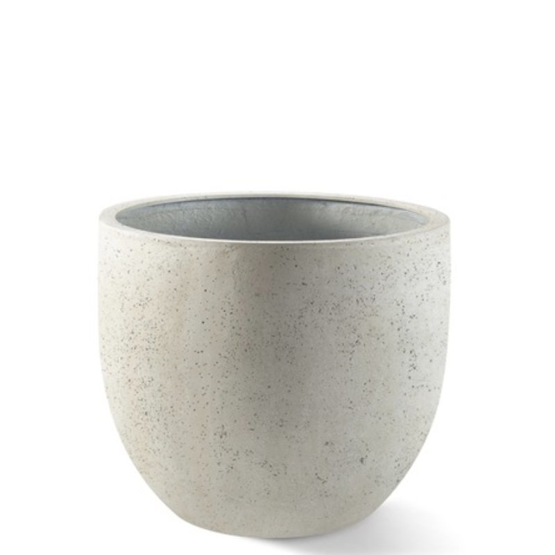 Venkovní květináč D-lite vajíčko S natural concrete s rozměry 30x30cm má matnou šedou barvu a je vyroben z kompozitního materiálu. Je odolný UV záření, materiál je mrazuvzdorný a vhodný do exteriéru i interiéru.