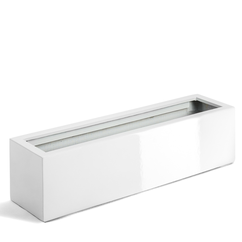 Truhlík D-lite bílý lesk s rozměry 100 x 30 x 30 cm má lesklou bílou lakovanou barvu a je vyroben z kompozitního materiálu. Materiál je mrazuvzdorný a vhodný do exteriéru i interiéru. Je odolný UV záření. Truhlík má předvrtaný drenážní odtok vody. Pro interiér je nutné zakoupit vodotěsnou folii do květináčů. Doporučujeme zakoupit vodoznak pro přehled o stavu hladiny vody v květináči.