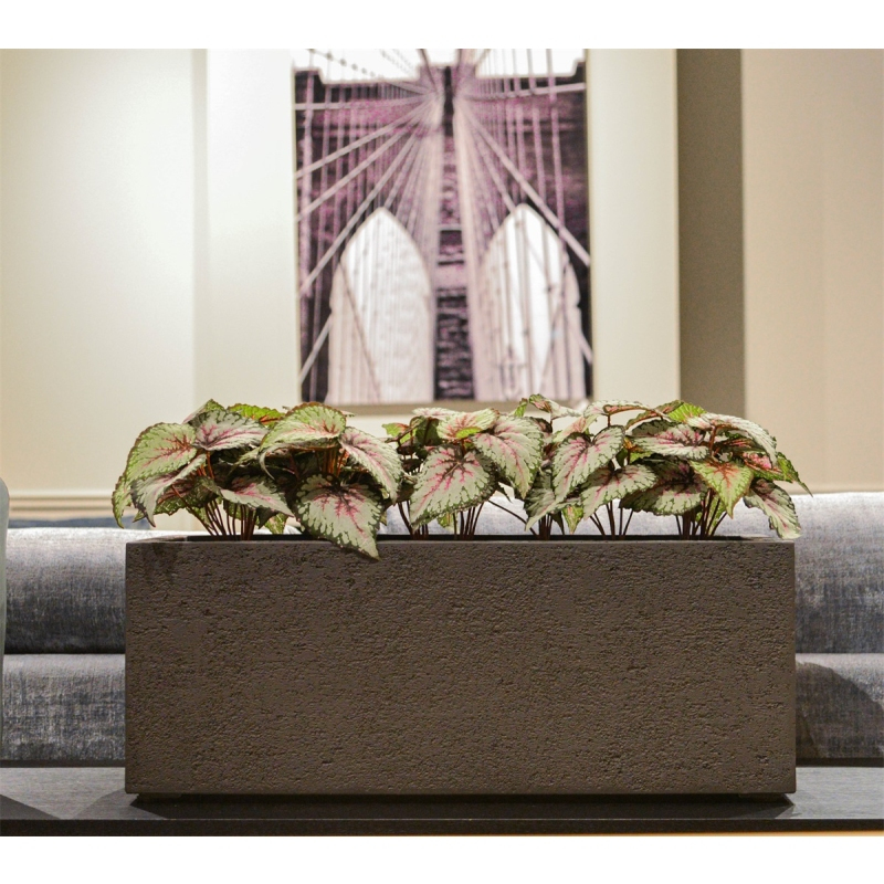 3 x venkovní květináč D-lite S s hrubým povrchem a hnědou matnou barvou ve tvaru truhlíku s rozměry 80 x 30 x 30 cm je vyroben z kompozitního materiálu. Je odolný UV záření, materiál je mrazuvzdorný a vhodný do exteriéru i interiéru. Pro interiér je nutné zakoupit vodotěsnou gumovou vložku do květináčů. Doporučujeme zakoupit vodoznak pro přehled o stavu hladiny vody v květináči.