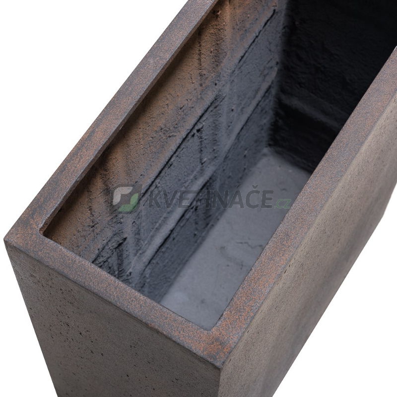 Venkovní květináč D-lite XL Rusty Iron Concrete ve tvaru vysokého truhlíku s rozměry 95 x 34 x 90 cm má matnou hnědou barvu a je vyroben z kompozitního materiálu. Je odolný UV záření, materiál je mrazuvzdorný a vhodný do exteriéru i interiéru. Pro interiér je nutné zakoupit vodotěsnou gumovou vložku do květináčů. Doporučujeme zakoupit vodoznak pro přehled o stavu hladiny vody v květináči.