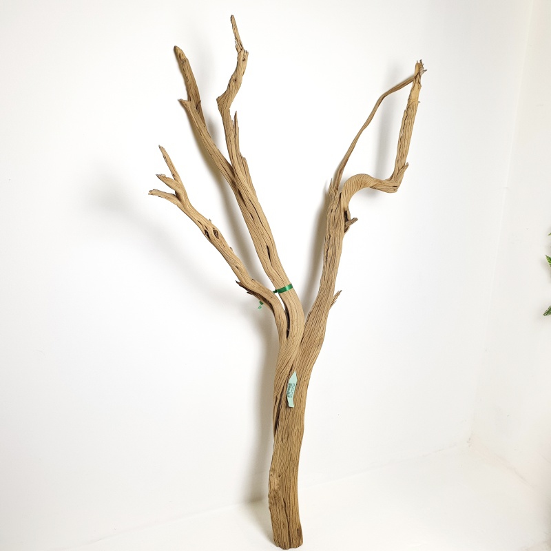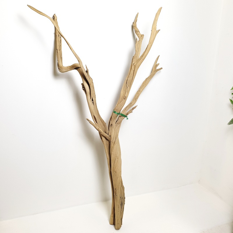 Dekorativní dřevěná větev Manzanita sandblasted KA s výškou 120 cm. Její povrch je upraven pro odolnost a stálost. Fotka konkrétního kusu, který máme skladem.
