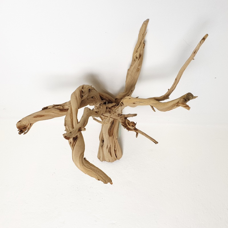 Dekorativní dřevěná větev Manzanita sandblasted KA s výškou 120 cm. Její povrch je upraven pro odolnost a stálost. Fotka konkrétního kusu, který máme skladem.
