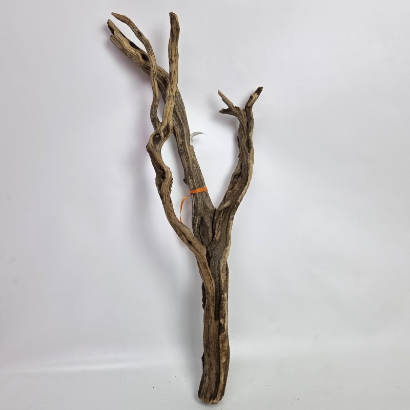 Dekorativní dřevěná větev Manzanita sandblasted KD s výškou 120 cm. Její povrch je upraven pro odolnost a stálost. Fotka konkrétního kusu, který máme skladem.