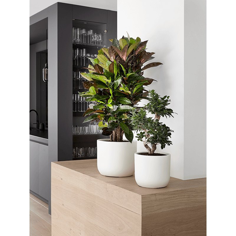 Květináč Ease v barvě krémově matné s rozměry 34 x 29 cm je vhodný do interiéru s jednoduchým jednobarevným designem. Květináč či nádoba je vodotěsná a není potřeba podmiska. Je vyrobený z kompozitního materiálu (sklolaminát)