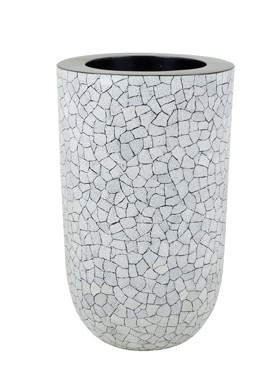 Luxusní květináč Eggmosaic Couple Flagstone s průměrem 40cm a výškou 64cm má kulatý vysoký tvar. Konstrukce květináčů je vyrobena z kvalitního pevného kompozitního materiálu. Povrch je lakovaný. Květináč je ručně vyrobený a to zaručuje originál každého kusu. Je vhodný do interiéru. Doporučujeme zakoupit vodoznak, díky kterému budete mít přehled o stavu hladiny vody v květináči.