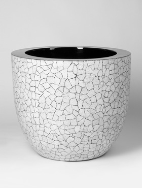 Luxusní květináč Eggmosaic Couple Flagstone s průměrem 60cm a výškou 50cm má kulatý tvar. Konstrukce květináčů je vyrobena z kvalitního pevného kompozitního materiálu. Povrch je lakovaný. Květináč je ručně vyrobený a to zaručuje originál každého kusu. Je vhodný do interiéru. Doporučujeme zakoupit vodoznak, díky kterému budete mít přehled o stavu hladiny vody v květináči.