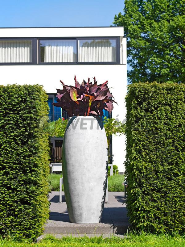 Venkovní květináč Essence Ami grey s rozměry 52x120cm má vysoký kulatý tvar s šedou matnou barvou s lehce porézním povrchem. Je vyrobený z kompozitního materiálu, který je odolný UV záření, mrazuvzdorný a vhodný do exteriéru i interiéru. Pro osazení živou rostlinou doporučujeme zakoupit vhodnou gumovou vložku a vodoznak pro lepší přehled o stavu hladiny vody v květináči.