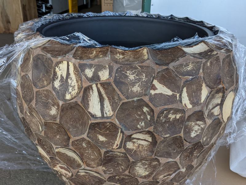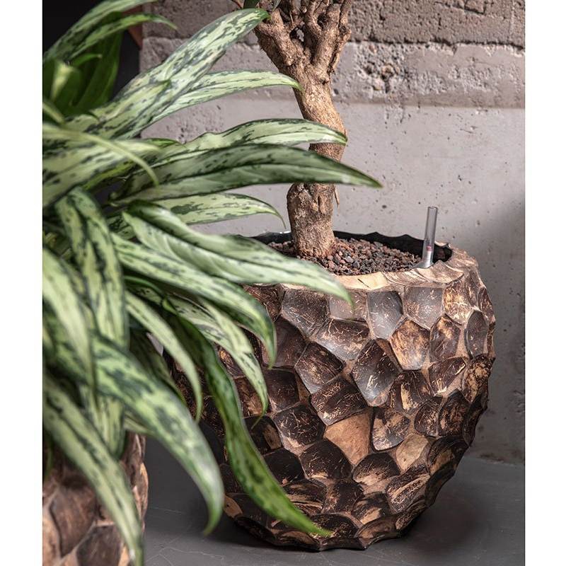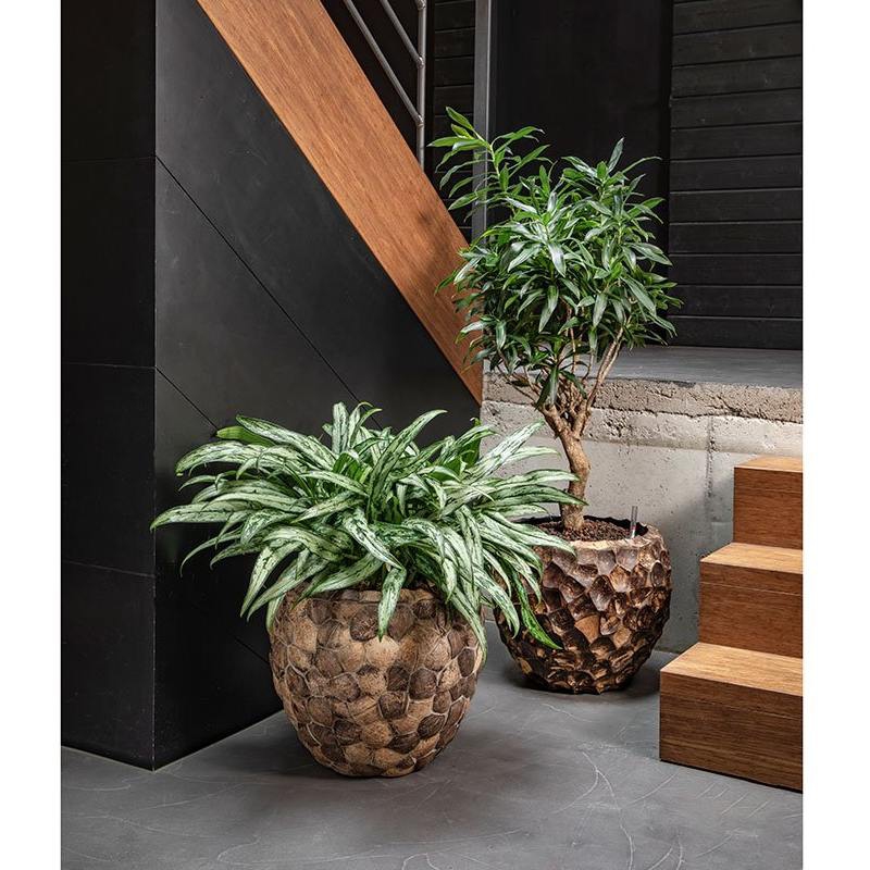 Luxusní květináč Facets Into Coco couple s rozměry 42 x 37 cm je vhodný do interiéru. Dokonalého přírodního designu je dosaženo lepením skořápek kokosu na povrchu, které jsou ručně broušeny. Skelet květináče je z kompozitního materiálu, který zaručí pevnost a lehkost. Květináč Facets má vnitřní odnímatelnou a vodotěsnou vložku. Každý kus je originál.