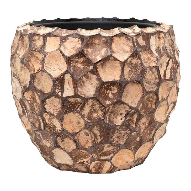 Luxusní květináč Facets Into Coco couple s rozměry 50 x 45 cm je vhodný do interiéru. Dokonalého přírodního designu je dosaženo lepením skořápek kokosu na povrchu, které jsou ručně broušeny. Skelet květináče je z kompozitního materiálu, který zaručí pevnost a lehkost. Květináč Facets má vnitřní odnímatelnou a vodotěsnou vložku. Každý kus je originál.
