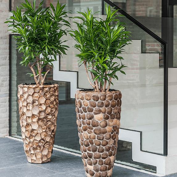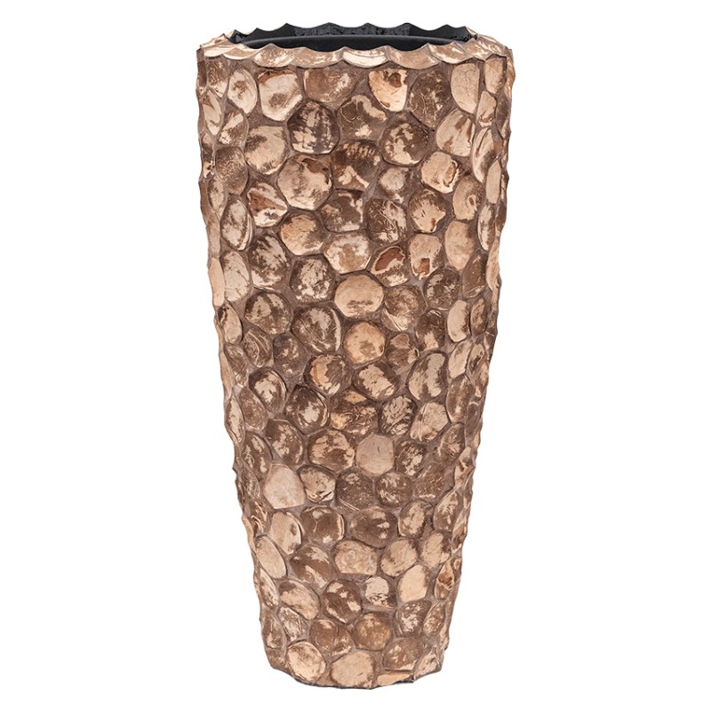 Luxusní květináč Facets Into Coco partner s rozměry 35 x 70 cm je vhodný do interiéru. Dokonalého přírodního designu je dosaženo lepením skořápek kokosu na povrchu, které jsou ručně broušeny. Skelet květináče je z kompozitního materiálu, který zaručí pevnost a lehkost. Květináč Facets má vnitřní odnímatelnou a vodotěsnou vložku. Každý kus je originál.