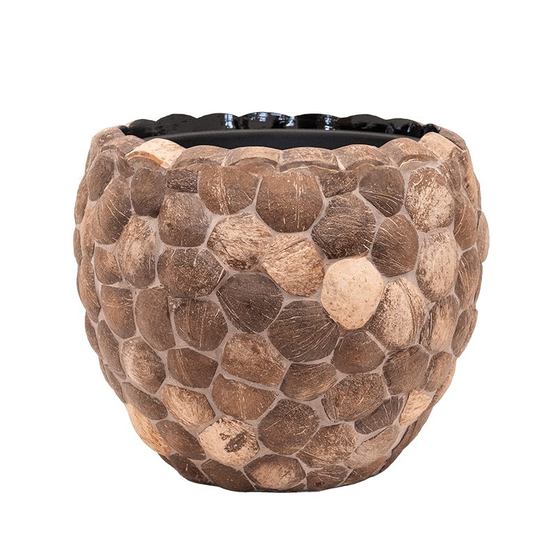 Luxusní květináč Facets Out Of Coco couple s rozměry 42 x 37 cm je vhodný do interiéru. Dokonalého přírodního designu je dosaženo lepením skořápek kokosu na povrchu, které jsou ručně broušeny. Skelet květináče je z kompozitního materiálu, který zaručí pevnost a lehkost. Květináč Facets má vnitřní odnímatelnou a vodotěsnou vložku. Každý kus je originál.