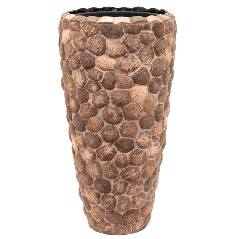 Luxusní květináč Facets Out Of Coco partner s rozměry 35 x 70 cm je vhodný do interiéru. Dokonalého přírodního designu je dosaženo lepením skořápek kokosu na povrchu, které jsou ručně broušeny. Skelet květináče je z kompozitního materiálu, který zaručí pevnost a lehkost. Květináč Facets má vnitřní odnímatelnou a vodotěsnou vložku. Každý kus je originál.