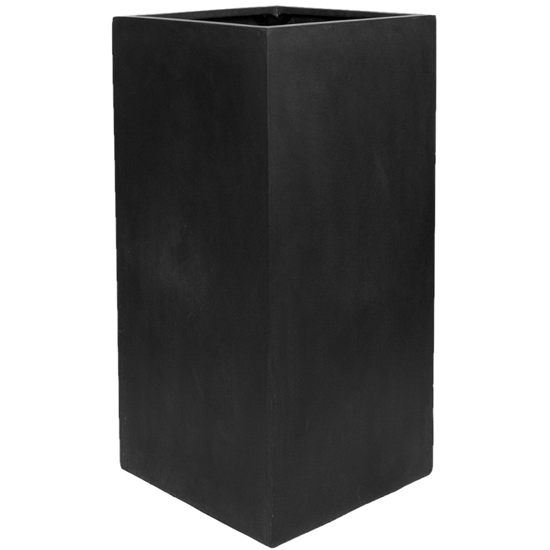 Venkovní květináč Fiberstone Dax černý matný vysokého konického kulatého tvaru s průměrem 47 cm a výškou 100 cm má matnou černou matnou barvu a je vyroben z kompozitního materiálu.