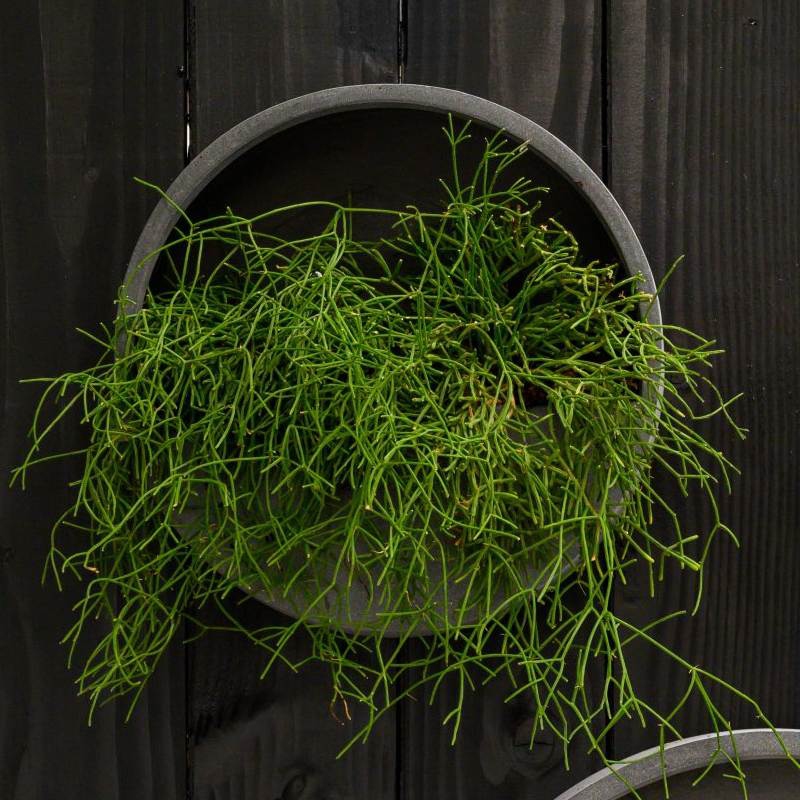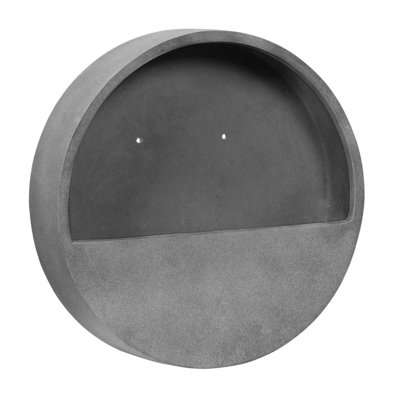 Závěsný květináč Wally S Grey mat s rozměry 40 x 40 cm a hloubkou 9 cm má šedou matnou barvu a je vyroben z kompozitního materiálu, který je lehký a pevný. Květináč je vhodný do letního exteriéru a interiéru. Je vodotěsný, ale je možné zespodu jednoduše navrtat otvor pro odtok dešťové vody.