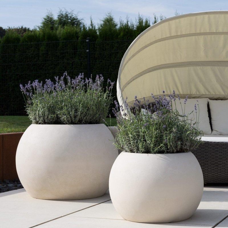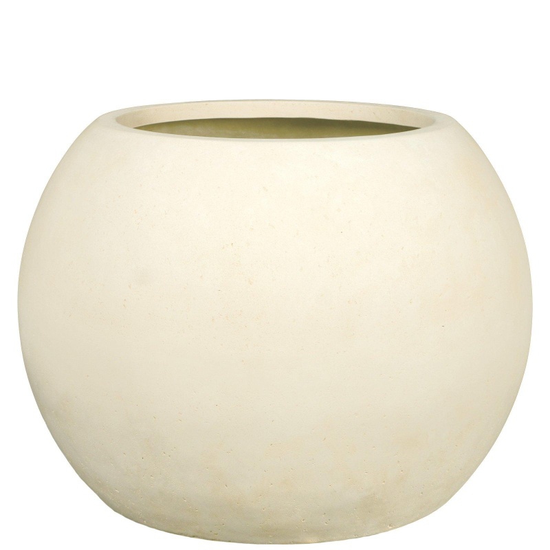 Venkovní květináč Globe Ami creme 60x43cm má tvar koule s pískovcovou matnou barvou s lehce porézním povrchem. Je vyrobený z kompozitního materiálu, který je odolný UV záření, mrazuvzdorný a vhodný do exteriéru i interiéru. Pro osazení živou rostlinou v interiéru doporučujeme zakoupit vodoznak pro přehled o stavu hladiny vody v květináči.