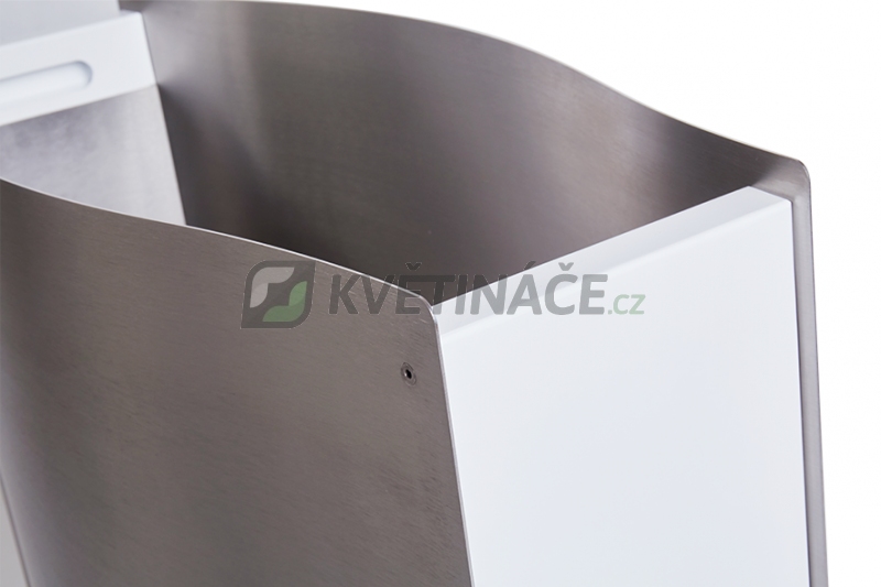 Nerezový truhlík Kasper Wave standard nerez s bílou bočnicí a rozměry 80x33x61cm je vyrobený z nerezavějící oceli a bočnice jsou lakovány matnou strukturovanou bílou barvou RAL 9003. Květináč je určený do interiéru. Vyrobeno v ČR. Novinka roku 2015.