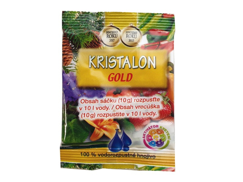 Unikátní složení krystalického hnojiva KRISTALON GOLD 10 gramů pro všechny rostliny s aktivátorem kvetení a plodů. Mikroprvky s vitamíny pro výbornou kondici rostlin. Univerzální použití zálivkou přímo ke kořenům nebo postřikem listů. Použití pro zeleninu, všechny druhy pokojových rostlin i vekovních rostlin včetně ovocných stromů a keřů, vinné révy apod. Osvědčená kvalita hnojiva Kristalon v praktickém balení pro každou domácnost.