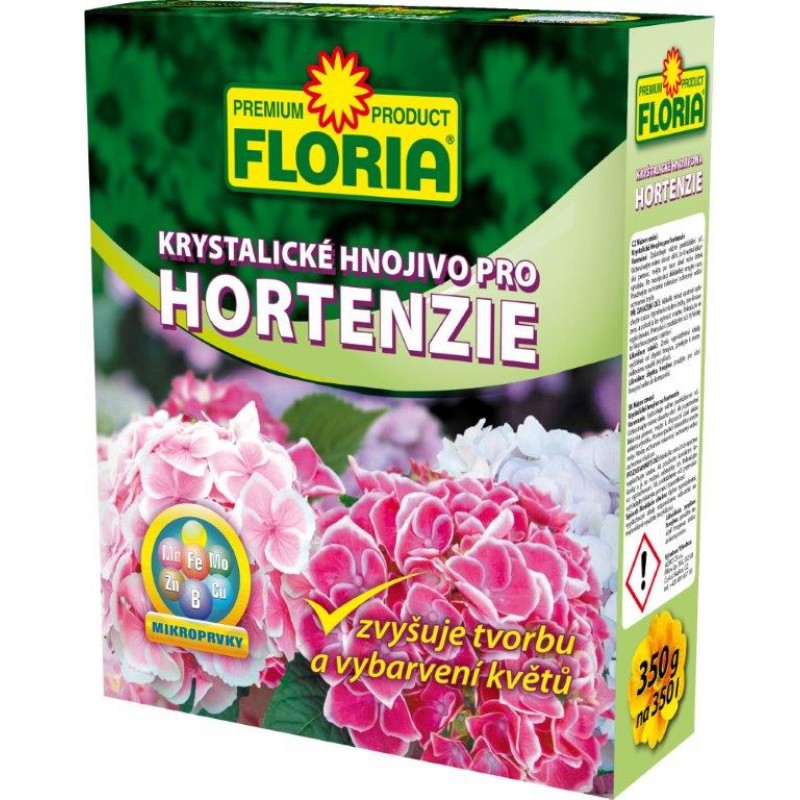FLORIA Krystalické hnojivo pro hortenzie je idelní na všechny hortenzie pěstovaných v nádobách i na záhonech. Vysoký obsah živin podpoří lepší vybarvení květů hortenzií, obsah hořčíku v hnojivu působí preventivně proti žloutnutí listů. Hnojivo obsahuje mikroprvky pro posílení vitality a obranyschopnosti rostlin. Účinné složky hnojiva zajistí lepší zakořenění, zvýší příjem živin z půdy a výrazně ovlivní tvorbu květů.