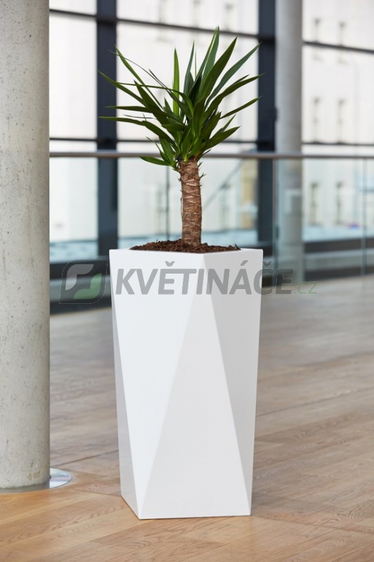 Hliníkový květináč Kasper Diamant L bílý s rozměry 47x47x80 cm je určený do interiéru a má tvar diamantu. Provedení v bílé barvě RAL 9003. Květináč je vyrobený z masivního hliníku a lakovány jemnou strukturovanou barvou. Doporučujeme zakoupit vodoznak a gumovou vložku. Ta zaručí 100% vodotěsnost v interiéru. V květináči lze vytvořit samozavlažovací systém.
