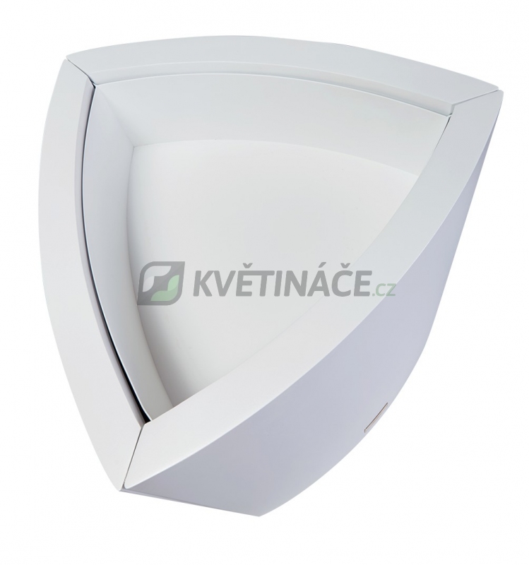 Květináč Triangle L je určený do interiéru a má trojúhelníkový vysoký tvar. Provedení v bílé barvě RAL 9003. Květináč je vyrobený z hliníku a lakovány jemnou strukturovanou barvou. Květináč má nádobu pro vložení květináče nebo osázení rostliny.