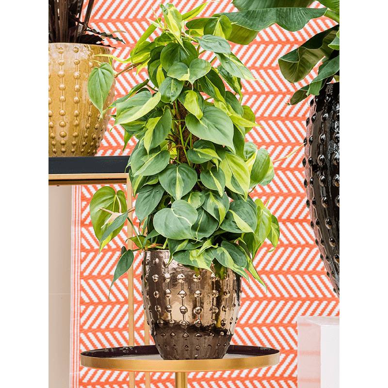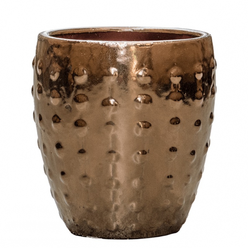 Keramický květináč Laos gold s průměrem 16 cm a výškou 18 cm má zlatou lesklou glazuru. Vhodný do interiéru a exteriéru. Květináč není vodotěsný. Doporučujeme zakoupit gumovou vložku pro osázení živou rostlinou v interiéru.