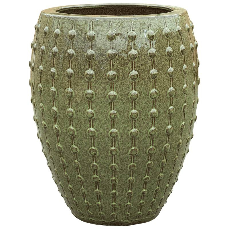 Keramický květináč Laos green s průměrem 44 cm a výškou 55 cm má zelenou lesklou glazuru. Vhodný do interiéru a exteriéru. Květináč není vodotěsný. Doporučujeme zakoupit gumovou vložku pro osázení živou rostlinou.