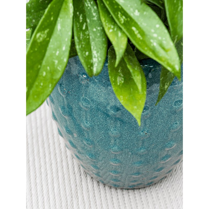 Keramický květináč Laos blue s průměrem 44 cm a výškou 55 cm má modrou lesklou glazuru. Vhodný do interiéru a exteriéru. Květináč není vodotěsný.