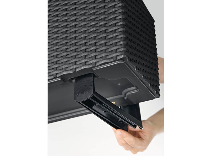 Venkovní samozavlažovací květináč Lechuza Balconera Cottage 100 Graphite Black komplet tvaru truhlíku s rozměry 99 cm x 19 cm a výškou 19 cm má černou matnou barvu a povrchová úprava imituje pletený ratan.