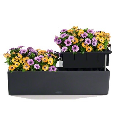 Venkovní závěsný samozavlažovací květináč Lechuza Balconera Trend 40 Slate komplet tvaru truhlíku s rozměry 40 cm x 19 cm a výškou 19 cm má břidlicovou matnou barvu a je z probarveného plastu.