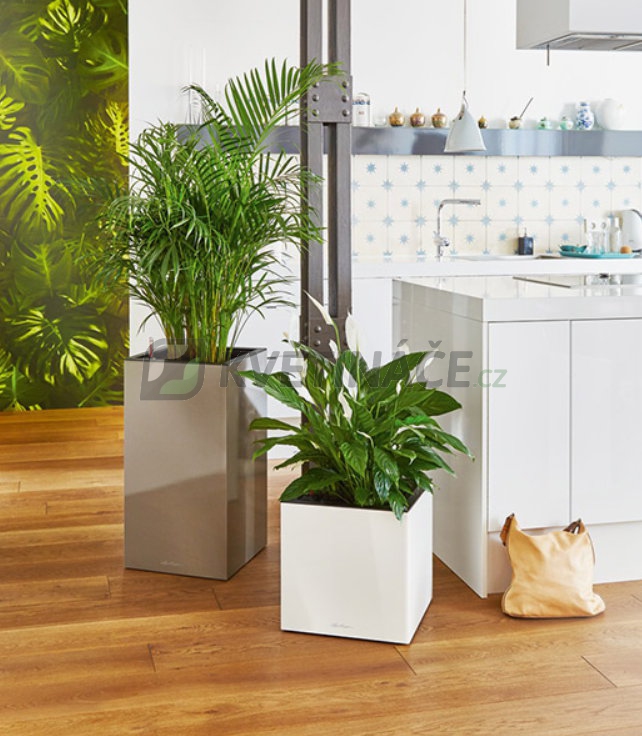 Lechuza Canto Premium Tower 40 white má lakovaný povrch s bílou lesklou barvou a rozměry 40x40x40cm. Je vhodný do interiéru i exteriéru s možností dokoupit pojezdová kolečka 50 pro snadnou manipulaci. Květináč obsahuje samozavlažovací set s nádrží na vodu 7 litrů a objem zeminy na 29 litrů.