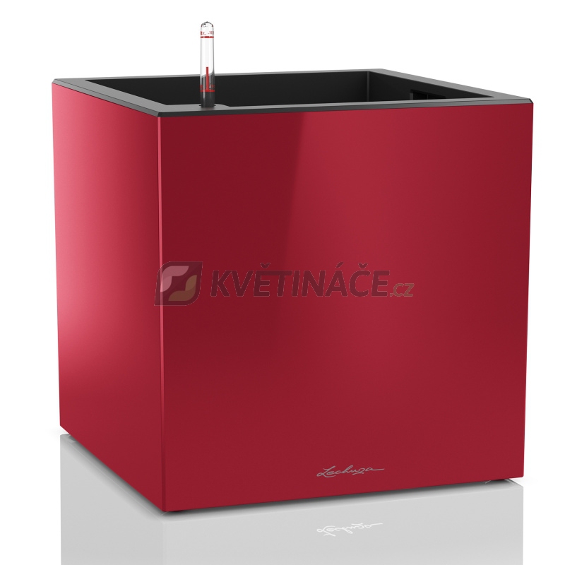 Lechuza Canto Premium Square 40 scarlet má lakovaný povrch s červenou lesklou barvou a rozměry 40x40x40cm. Je vhodný do interiéru i exteriéru s možností dokoupit pojezdová kolečka 50 pro snadnou manipulaci. Květináče obsahuje samozavlažovací set s nádrží na vodu 7 litrů a objem zeminy na 29 litrů. Dále vodoznak díky kterému, budete mít přehled a stavu vody v květináči. Objem zeminy na 29 litrů a doporučená maximální výška rostliny bez balu je 100cm. Výška balu 25cm.