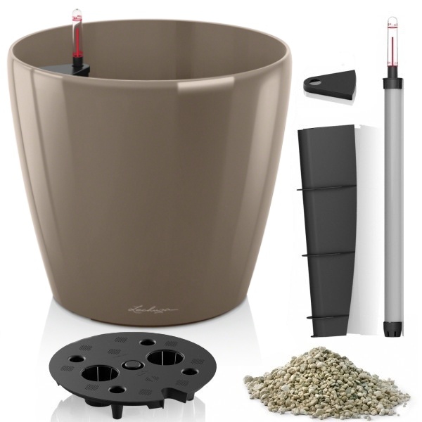Samozavlažovací květináč Lechuza Classico 28 Taupe komplet s průměrem 28 cm a výškou 26 cm má lesklou kapučíno barvu a povrch je z lakovaného plastu. Květináč je vhodný do interiéru. Balení obsahuje samozavlažovací systém Lechuza a ukazatele hladiny vody. Nádrž na 2 litry vody. Díky tomuto systému již nehrozí přelití květiny. Doporučené maximální rozměry rostliny: výška 70 cm a výška kořenového balu 17 cm. Nelze dokoupit pojezdová kolečka.