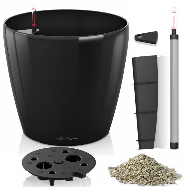 Samozavlažovací Set systém Classico 43, který se vkládá do Lechuza květináčů Classico 43. V balení je vodoznak na vodu, Lechuza PON na drenáž, oddělující dno na vodu a krytka na šachtu vody.